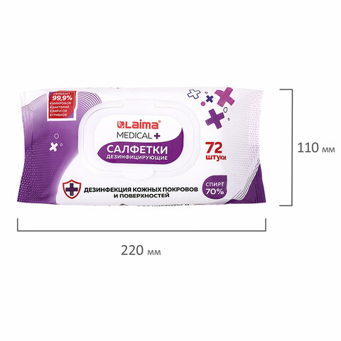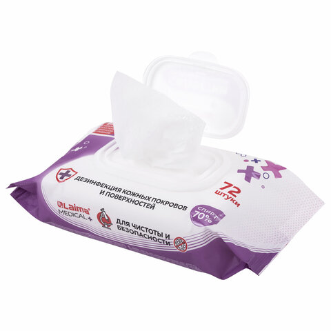 Дезинфицирующие салфетки спиртовые (70%), для рук и любых поверхностей, 72 шт., LAIMA MEDICAL, 608766