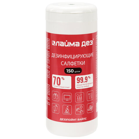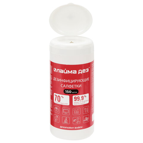 Дезинфицирующие салфетки спиртовые (70%) для рук и поверхностей 150 шт., ЛАЙМАДЕЗ, банка, 609592