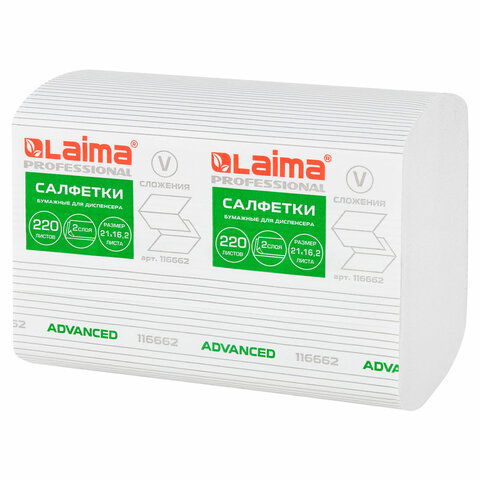 Салфетки бумажные для диспенсера системы N4 КОМПЛЕКТ 15 пачек х 220 шт., LAIMA ADVANCED, 21х16,2 см, 2-слойные, 116662