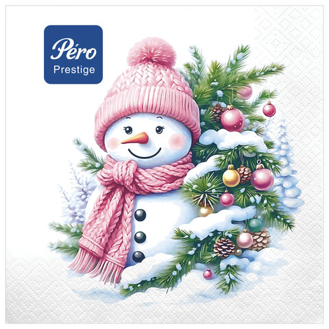 Салфетки бумажные 20 шт., 33х33 см, "Милый снеговик", 3-слойные, PERO "Prestige", 2999
