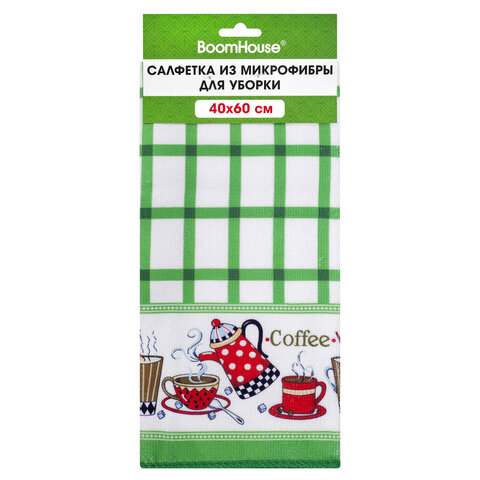 Салфетка из МИКРОФИБРЫ универсальная, 40х60 см, зеленая клетка, орнамент, 240 г/м2, BOOMHOUSE (БУМХАУС), 700878