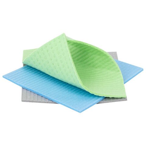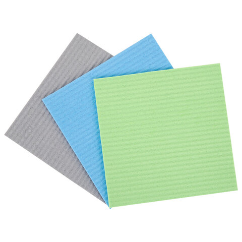 Салфетки губчатые для уборки кухни 15х15 см, ЦЕЛЛЮЛОЗНЫЕ, КОМПЛЕКТ 3 шт., цветные, LAIMA, 700262