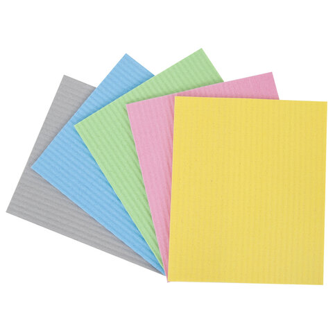 Салфетки губчатые для уборки кухни 15х18 см, ЦЕЛЛЮЛОЗНЫЕ, КОМПЛЕКТ 5 шт., цветные, LAIMA, 700267