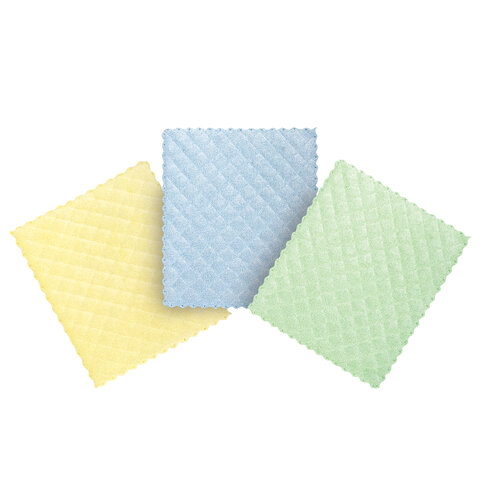 Салфетки из МИКРОФИБРЫ ГУБЧАТЫЕ 17х20 см, КОМПЛЕКТ 3 шт., 3 слоя, ассорти, 440 г/м2, LAIMA, 606657