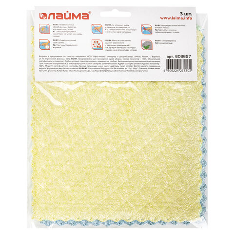 Трехслойная губчатая салфетка LAIMA из микрофибры обладает повышенной впитываемостью, имеет длительный срок службы. Она идеально удаляет загрязнения, вытирает пыль, полирует любые виды поверхностей. За счет трех слоев имеет высокую плотность.
