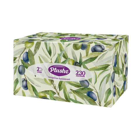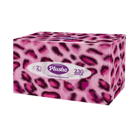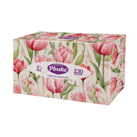 Косметические салфетки 230 штук в картонном боксе, 2-слойные, PLUSHE (ПЛЮШЕ), 20х20 см, 70820