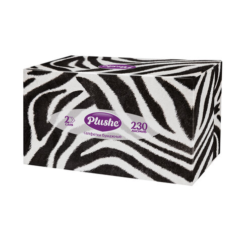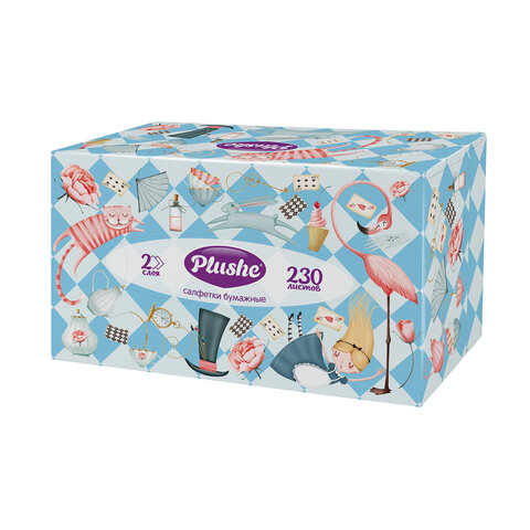 Бумажные салфетки, надежно хранятся в коробочках по 230 штук. Салфетки PLUSHE изготовлены из 100% первичной целлюлозы, что делает их мягкими и гипоаллергенными. Удобный формат упаковки отлично разместится, как на кухонном столе, так и в детской комнате.