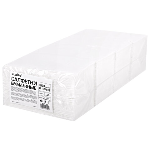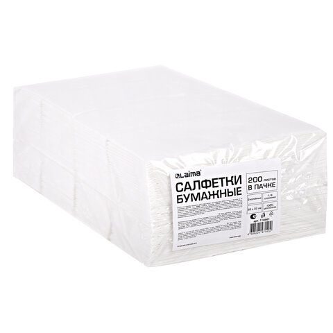 Салфетки бумажные 2-х слойные, 33x33 см, 200 штук в упаковке, 1/8 сложение, LAIMA, 116661