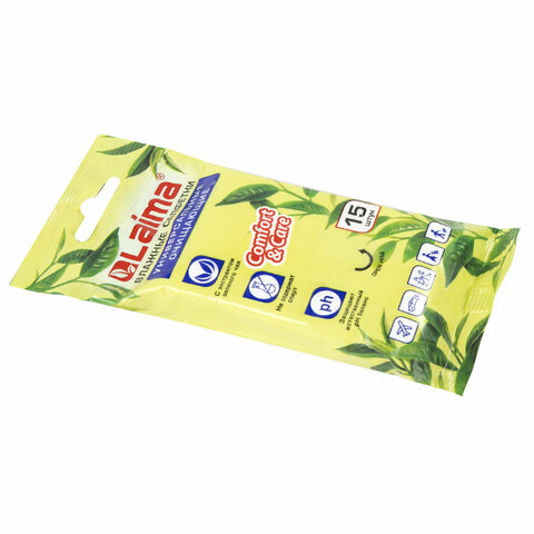 Салфетки влажные 15 шт., УНИВЕРСАЛЬНЫЕ, очищающие, с экстрактом зеленого чая, LAIMA, 125956