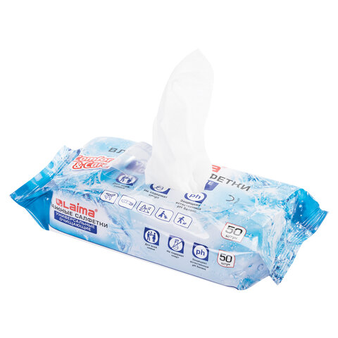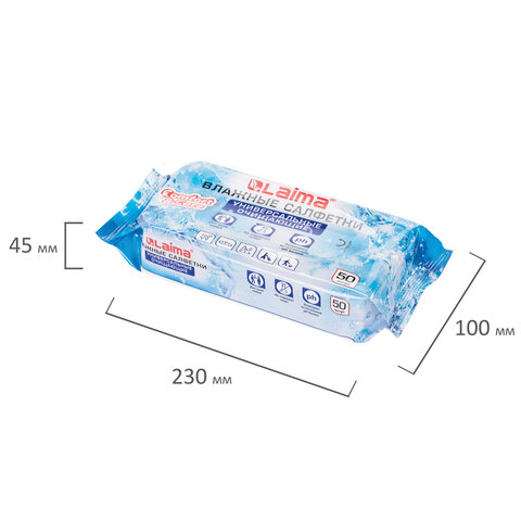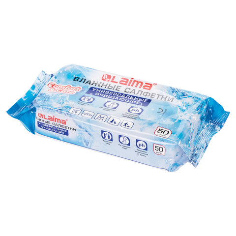 Салфетки влажные 50 шт., УНИВЕРСАЛЬНЫЕ, очищающие для всей семьи, LAIMA, 125960