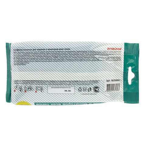 Влажные салфетки LAIMA подходят для мониторов всех типов, очков и объективов, эффективно удаляют пыль и загрязнения. Перед применением слегка проветрить, чтобы салфетка не была слишком влажной. Идеальны для обычной влажной уборки любых поверхностей.