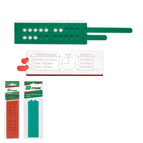 Предназначены для наглядного и эффективного обучения школьников начальных классов сложению, вычитанию, умножению и делению. Снабжены шкалой 20 см и дополнительной справочной информацией с обратной стороны.