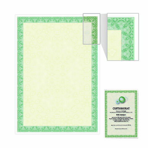 Сертификат-бумага для лазерной печати BRAUBERG, А4, 25 листов, 115 г/м2, "Зеленый интенсив", 122623