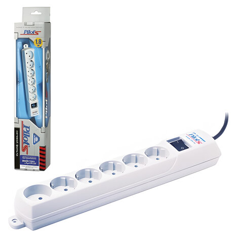 Сетевой фильтр PILOT "S", 5 компьютерных розеток + 1 бытовая розетка, 1,8 м, белый