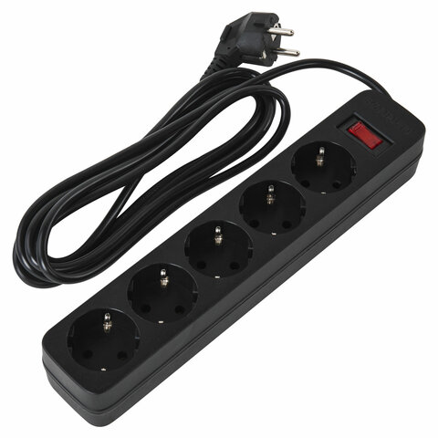 Сетевой фильтр SONNEN SPB-305, 5 розеток с заземлением, выключатель, 10 А, 3 м, черный, 513657