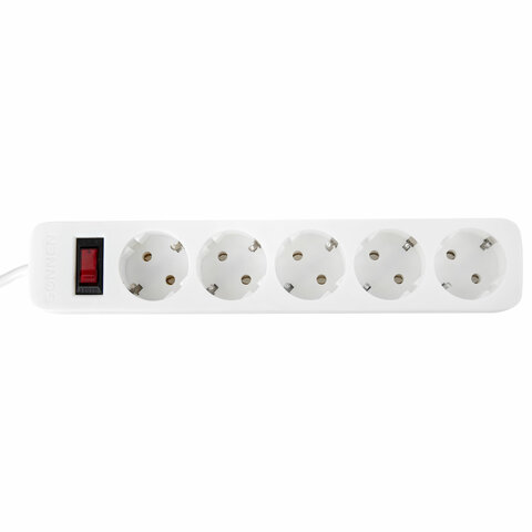 Сетевой фильтр SONNEN SPW-185, 5 розеток с заземлением, выключатель, 10 А, 1,8 м, белый, 513653