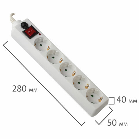 Сетевой фильтр SONNEN U-351, 5 розеток, с заземлением, выключатель, 10 А, 1,8 м, белый, 511424