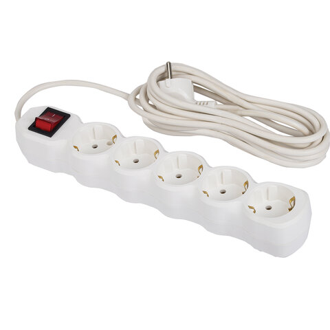 Сетевой фильтр СУ10-005 5 розеток, с заземлением, выключатель, 10 А, 5 м, белый, 7040