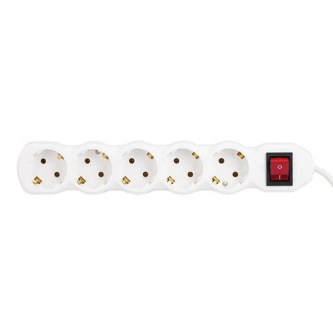Сетевой фильтр СУ10-005 5 розеток, с заземлением, выключатель, 16 А, 3 м, белый, 7044