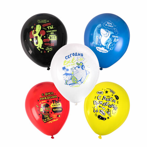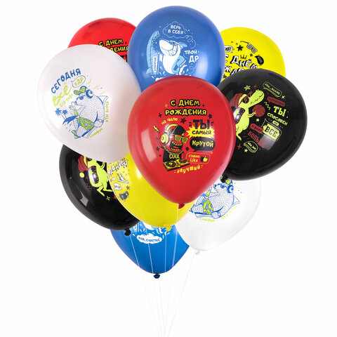 Шары воздушные 30 см с рисунком "Приколы для него", КОМПЛЕКТ 10 шт., ассорти, BRAUBERG, 591893