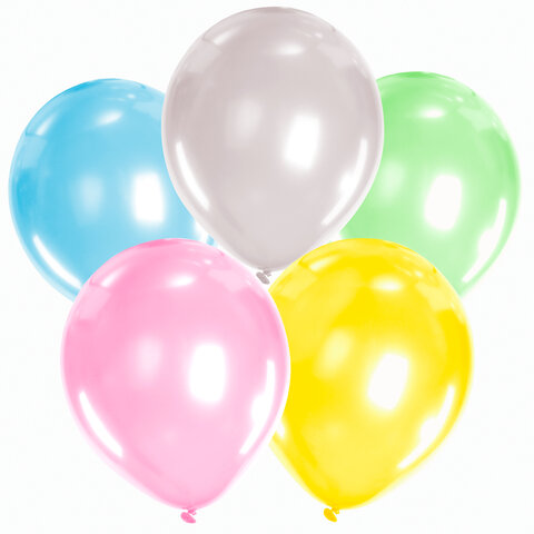 Шары воздушные ЗОЛОТАЯ СКАЗКА, 12" (30 см), КОМПЛЕКТ 10 штук, перламутровые, ассорти 5 цветов, пакет, 105014