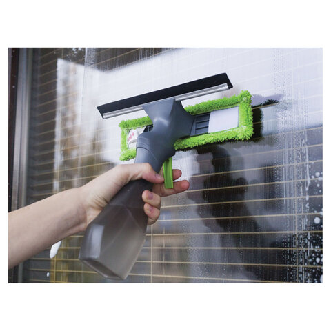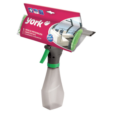 Окномойка "3 в 1": насадка из микрофибры, сгон, рукоятка-флакон с распылителем, 26х25,5х10 см, YORK, 84040