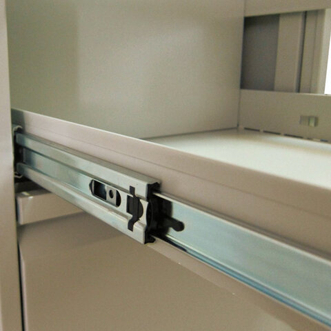 Картотечный шкаф с пятью выдвижными ящиками и антиопрокидывающим устройством. Телескопические направляющие обеспечивают плавный ход ящика даже при полной нагрузке. Предназначен для хранения папок формата А4 (210х297 мм) и Foolscap (366х242 мм).