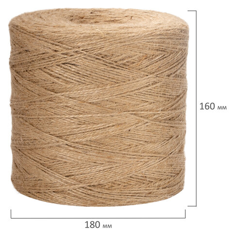 Шпагат джутовый банковский полированный, длина 1200 м, диаметр 1,8 мм, линейная плотность 1200 текс, BRAUBERG, 600396