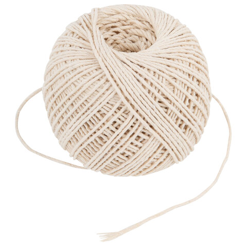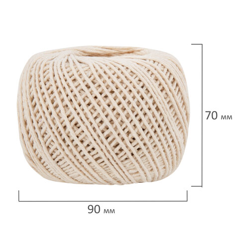 Шпагат хлопковый для прошивки документов, вязания, макраме, длина 200 м, диаметр 2 мм, BRAUBERG, 700363