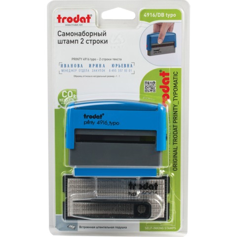 Штамп самонаборный 2-строчный, оттиск 70х10 мм, синий без рамки, TRODAT 4916 P2, КАССЫ В КОМПЛЕКТЕ, 32912