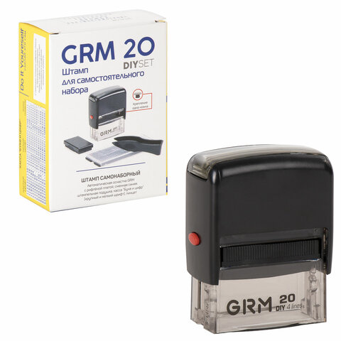 Штамп самонаборный 4-строчный, оттиск 38х14 мм, синий, без рамки, GRM 20, КАССА В КОМПЛЕКТЕ, 116000010