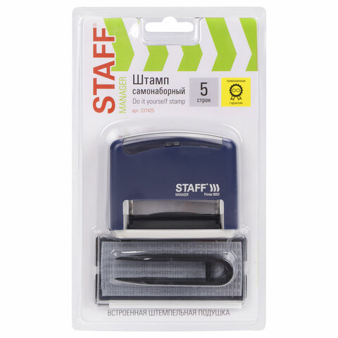 Штамп самонаборный 5-строчный STAFF, оттиск 58х22 мм, "Printer 8053", КАССЫ В КОМПЛЕКТЕ, 237425