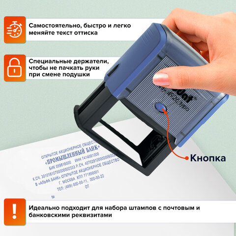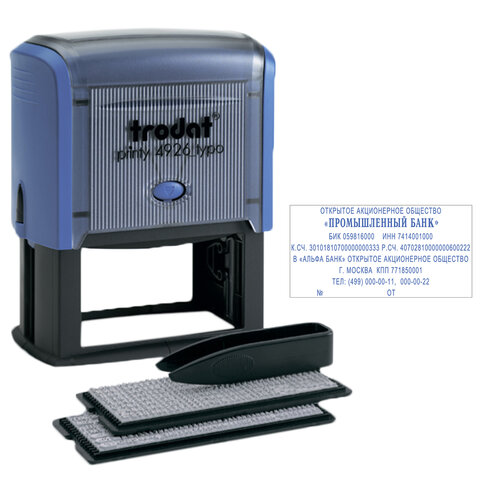 Штамп самонаборный 8-строчный, оттиск 75х38 мм, синий без рамки, TRODAT 4926 P2, КАССЫ В КОМПЛЕКТЕ, 167041