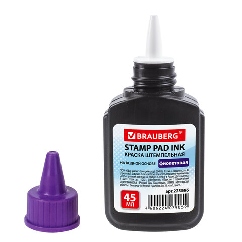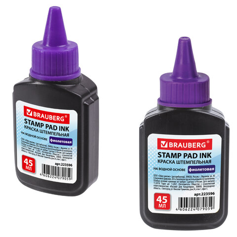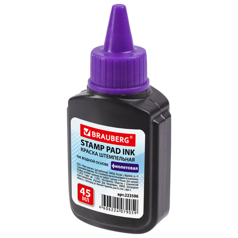 Краска штемпельная BRAUBERG, фиолетовая, 45 мл, на водной основе, 223596