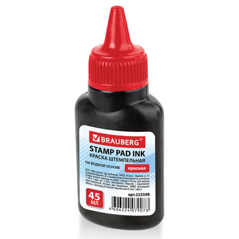 Краска штемпельная BRAUBERG, красная, 45 мл, на водной основе, 223598