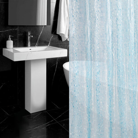 Шторка для ванной EVA, 180х200 см, кольца в комплекте, СИНЯЯ ЛЕДЯНАЯ СВЕЖЕСТЬ, PRIMILA (ПРИМИЛА), 700100