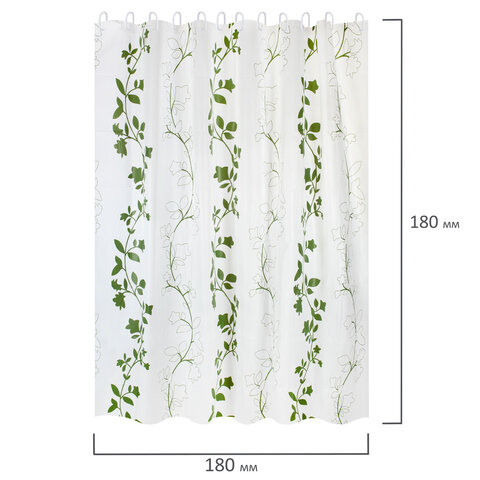 Шторка для ванной PEVA, 180х180 см, кольца в комплекте, дизайн ассорти, РАСТЕНИЯ, PRIMILA (ПРИМИЛА), 700076