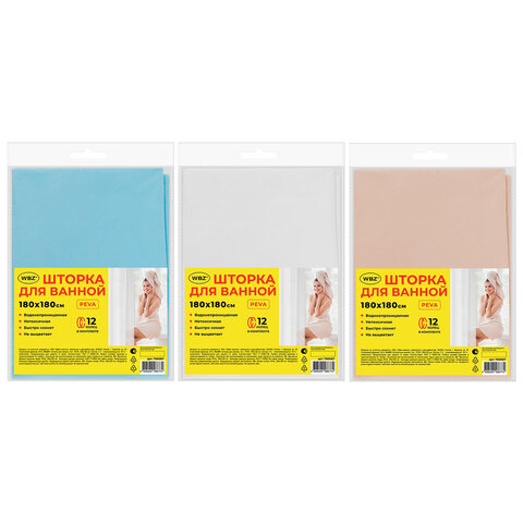 Шторка для ванной PEVA, 180х180 см, кольца в комплекте, цвет ассорти (белый, голубой, коричневый), WBZ (ВБЗ), 700067