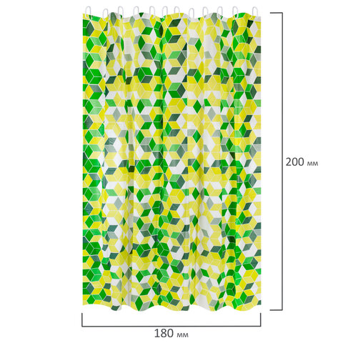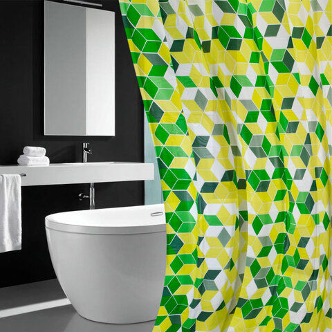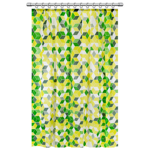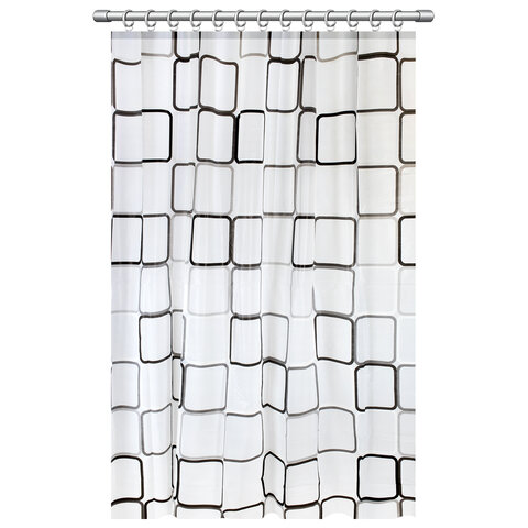 Шторка для ванной PEVA, 180х200 см, кольца в комплекте, дизайн ассорти, ФИГУРЫ, PRIMILA (ПРИМИЛА), 700075