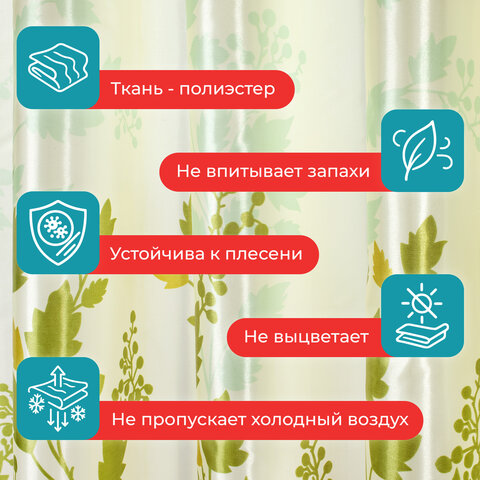 Шторка для ванной ПОЛИЭСТЕР, 180х180 см, кольца в комплекте, ФЛОРА, PRIMILA (ПРИМИЛА), 700080