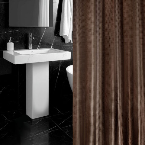 Шторка для ванной ПОЛИЭСТЕР, 180х180 см, кольца в комплекте, КОРИЧНЕВЫЙ БРИЛЛИАНТ, PRIMILA (ПРИМИЛА), 700091