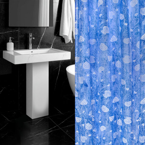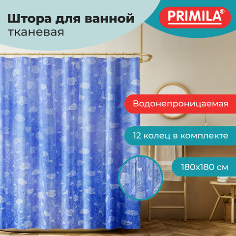 Шторка для ванной ПОЛИЭСТЕР, 180х180 см, кольца в комплекте, МОРЕ, PRIMILA (ПРИМИЛА), 700077