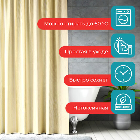 Шторка для ванной ПОЛИЭСТЕР, 180х200 см, кольца в комплекте, ЗОЛОТОЙ БРИЛЛИАНТ, PRIMILA (ПРИМИЛА), 700095