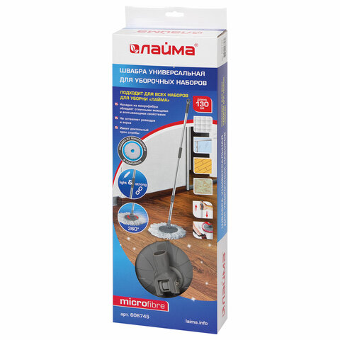 Универсальная круглая швабра LAIMA предназначена для проведения влажной уборки помещений. Подходит для большинства наборов для уборки с отжимом центрифуга. Можно применять для мытья напольных покрытий любого типа.
