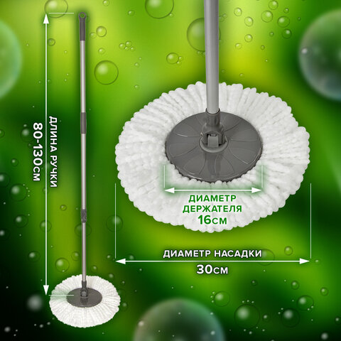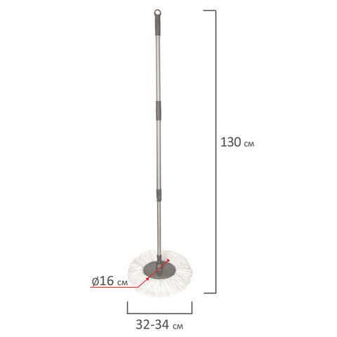 Швабра для наборов для уборки с круглой насадкой из микрофибры, черенок 130 см, LAIMA, 606745