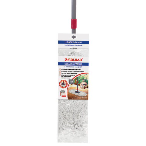 Швабра-рамка для СУХОЙ УБОРКИ, 40 см, телескопический черенок из нержавеющей стали 125 см, МОП хлопок, LAIMA, 603605