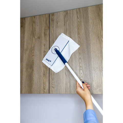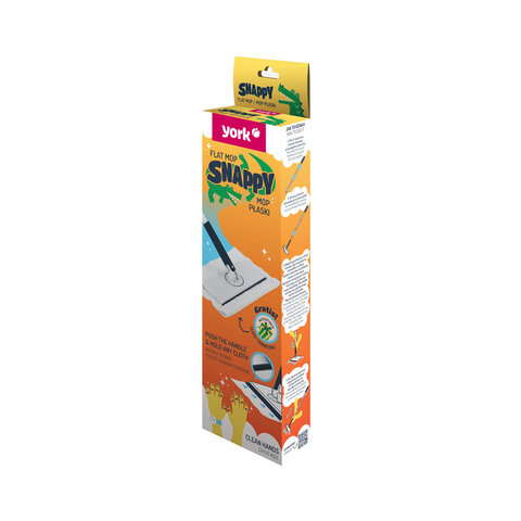 Швабра для мелкой уборки с автозахватом салфетки SNAPPY от YORK подходит для мытья стен в ванной и туалете и уборки небольших поверхностей. Подходит почти любая салфетка. Имеет черенок 127см, платформу 25х10см, в комплекте салфетка 30х30см.