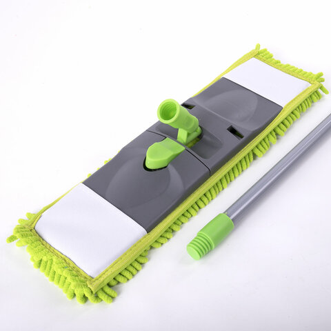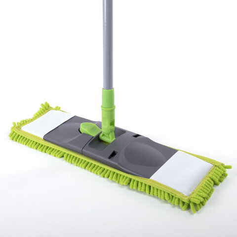 Швабра ЛЮБАША с черенком длиной 110 см, плоским флаундером и насадкой из ворсистой микрофибры (синель/букли) в комплекте в индивидуальной упаковке. Она станет незаменимой помощницей в офисе или дома.