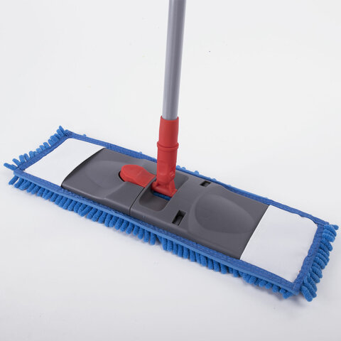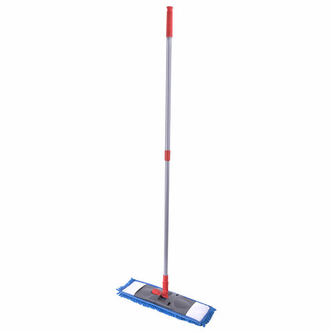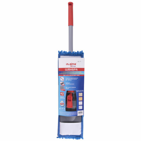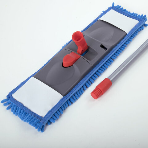 Швабра с флаундером 40 см, черенок 80-120 см, еврорезьба, насадка МОП микрофибра СИНЕЛЬ, индивидуальная упаковка пакет, LAIMA, 606314