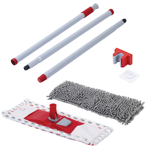 Швабра с флаундером 40 см, составной черенок 120 см, МОП микрофибра/абразив + МОП СИНЕЛЬ, PERKLIN (ПЕРКЛИН), 700987